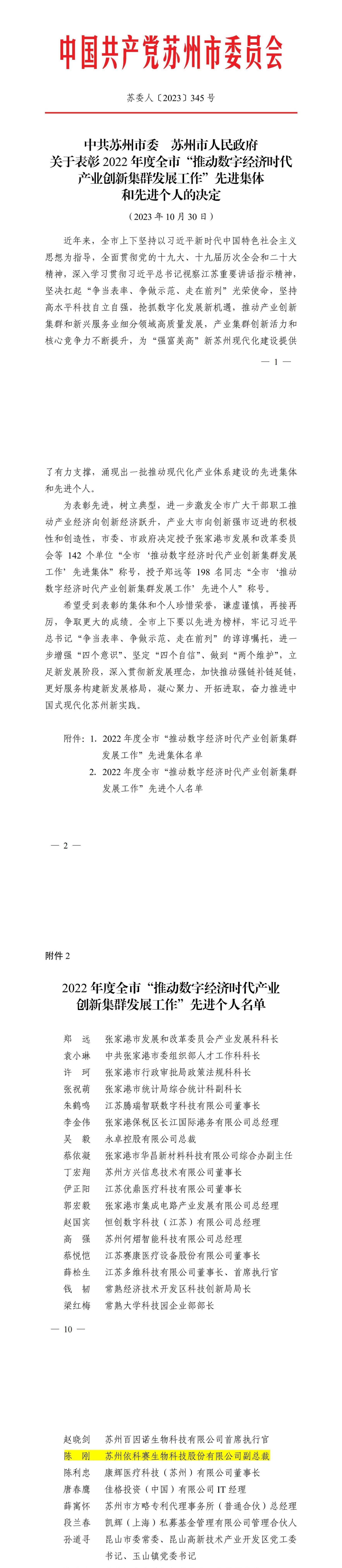 日前,蘇州市發(fā)布了“推動數(shù)字經(jīng)濟時代產(chǎn)業(yè)創(chuàng)新集群發(fā)展工作”先進個人表彰對象名單,我司COO陳剛先生榮獲“推動數(shù)字經(jīng)濟時代”先進個人。