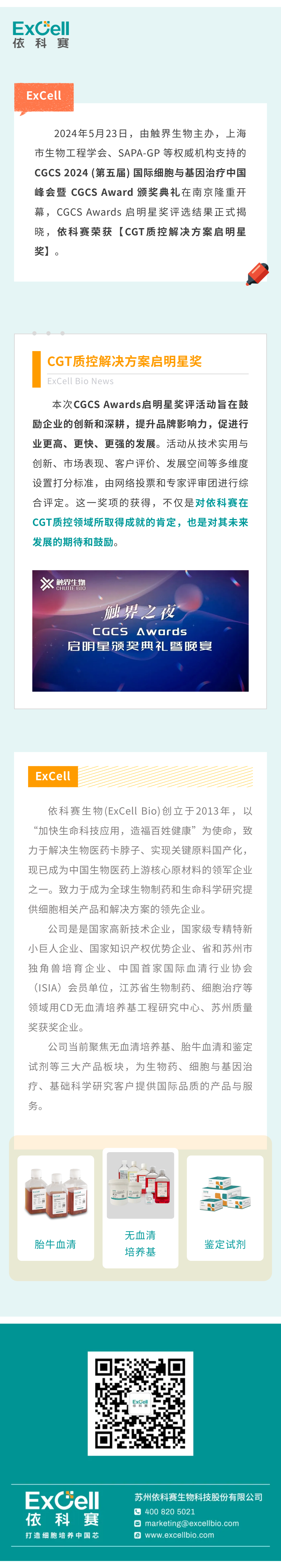 依科賽榮獲CGCS Awards CGT質(zhì)控解決方案啟明星獎!
