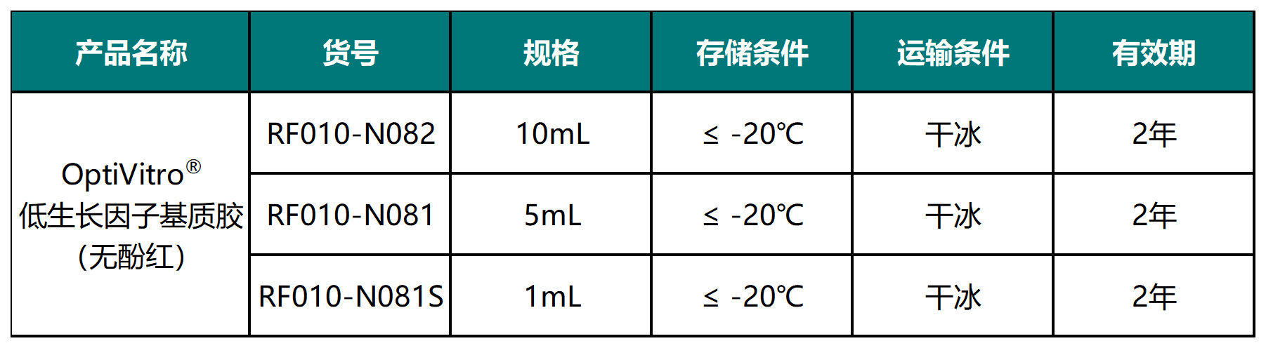 OptiVitro® 低生長(zhǎng)因子基質(zhì)膠(無(wú)酚紅)是從表達(dá)多種膠原蛋白的 EHS 小鼠肉瘤中抽提出的可溶性基底膜基質(zhì),主要成分是層粘連蛋白(Laminin)、IV 型膠原蛋白(Col-IV)、硫酸乙酰肝素蛋白多糖(Heparansulphate)和巢蛋白(Entactin),同時(shí)也含有轉(zhuǎn)化生長(zhǎng)因子β(TGF-β)、表皮生長(zhǎng)因子(EGF)、類胰島素生長(zhǎng)因子(IGF-1)、成纖維細(xì)胞生長(zhǎng)因子(bFGF)等相關(guān)生長(zhǎng)因子。OptiVitro® 低生長(zhǎng)因子基質(zhì)膠(無(wú)酚紅)經(jīng)特殊處理,適用于需要避免顏色干擾、對(duì)基底膜制備要求較高的研究應(yīng)用,如管狀骨細(xì)胞信號(hào)優(yōu)化、原代小鼠哺乳動(dòng)物上皮細(xì)胞基因表達(dá)的研究,可減少生長(zhǎng)因子誘導(dǎo)的背景信號(hào)。本產(chǎn)品溶于無(wú)酚紅的高糖 DMEM 培養(yǎng)基中,含 50 μg/ml 慶大霉素。本產(chǎn)品經(jīng)認(rèn)證不含 LDEV。