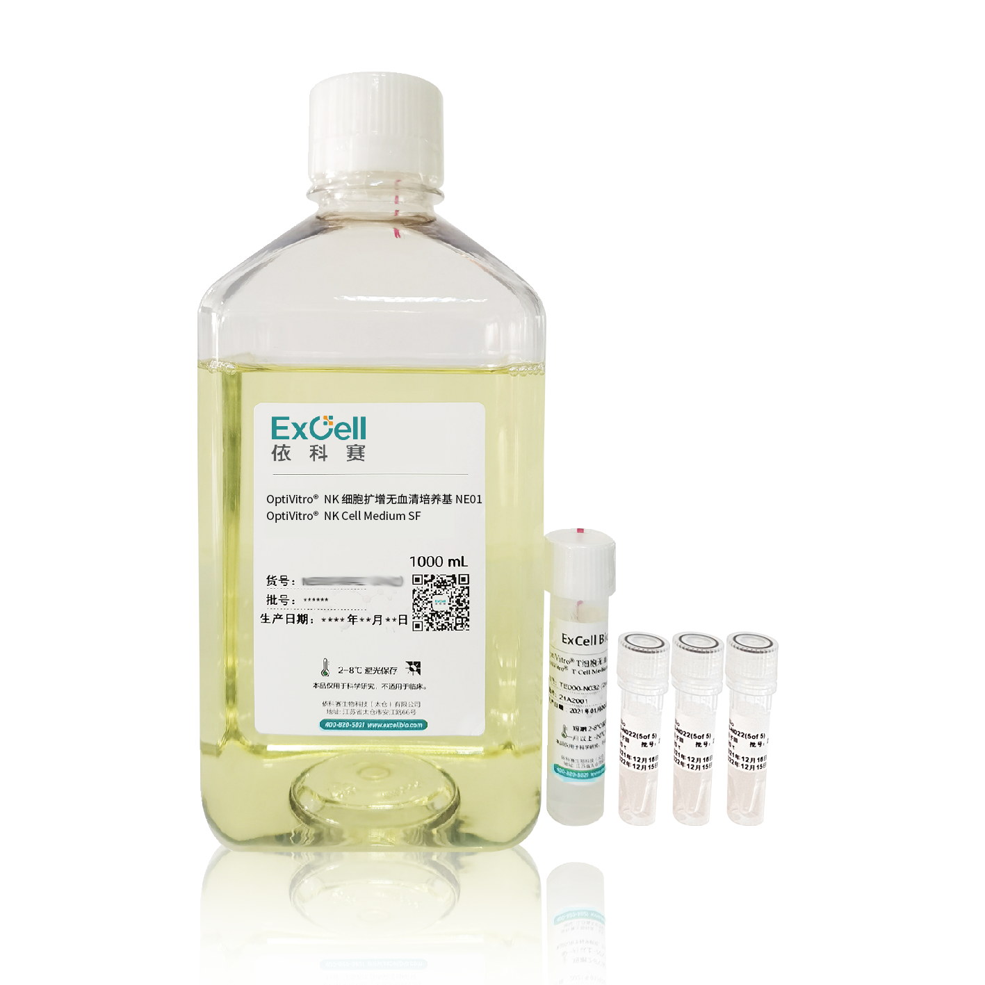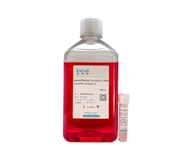 概述OptiVitro? NK 細(xì)胞擴(kuò)增無(wú)血清培養(yǎng)基 NE01(無(wú)酚紅) 是一款專為 NK 細(xì)胞培養(yǎng)而設(shè)計(jì)的無(wú)血清(Serum-Free)、無(wú)異源動(dòng)物源成分、無(wú)白介素生長(zhǎng)因子的 NK 細(xì)胞維持和擴(kuò)增培養(yǎng)基,包括 NK 細(xì)胞無(wú)血清基礎(chǔ)培養(yǎng)基 NE01(無(wú)酚紅)、免疫細(xì)胞無(wú)血清培養(yǎng)基添加組分 UE01。和傳統(tǒng)的含血清培養(yǎng)基相比,無(wú)血清培養(yǎng)基的設(shè)計(jì)大大降低了在 NK 細(xì)胞培養(yǎng)過(guò)程中引入異源感染物的風(fēng)險(xiǎn),提高了培養(yǎng)基批次間的一致性,并且避免了血清中的不明確成分可能導(dǎo)致的 NK 細(xì)胞過(guò)度激活以及細(xì)胞耗竭,有利于進(jìn)行臨床及大規(guī)模轉(zhuǎn)化。經(jīng)嚴(yán)格實(shí)驗(yàn)室驗(yàn)證,OptiVitro? NK 細(xì)胞擴(kuò)增無(wú)血清培養(yǎng)基 NE01 適合純因子激活體系、滋養(yǎng)層細(xì)胞激活體系,可添加熱滅活自體血漿、血清替代物或人 AB 血清使用。